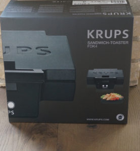 Nachdem ich mich ausführlich auf der Testseite informiert habe, entscheide ich mich für den Testsieger, den Sandwichtoaster FDK 451 von KRUPS. Er sieht klasse aus, kann auch platzsparend aufrecht hingestellt werden und hat das passende Format zu unserem Toastbrot.