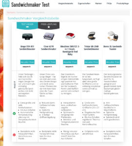 Die Auswahl an Sandwichmakern, Sandwichtoastern und Sandwichgrills ist riesig. Da ich bei technischen Geräten immer Schwierigkeiten habe, eine Entscheidung zu treffen, bin ich froh, einen Vergleichstest zu finden, der mir zum einen die Unterschiede erklärt und zum anderen die Vor- und Nachteile einzelner Produkte in einer Tabelle deutlich macht.