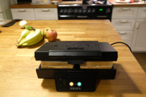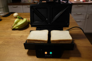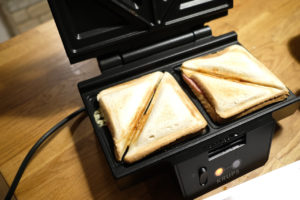 Auf der Suche nach geeigneten Snackideen habe ich mich an meine Studentenzeit in England erinnert. Da habe ich mir immer köstliche Sandwiches im Sandwichmaker gemacht. Zurück in Deutschland ist es dann irgendwie in Vergessenheit geraten, dabei ist es eine super Möglichkeit, auf die Schnelle etwas zu zubereiten, was gut schmeckt und wo man die benötigten Zutaten meist sowieso da hat.